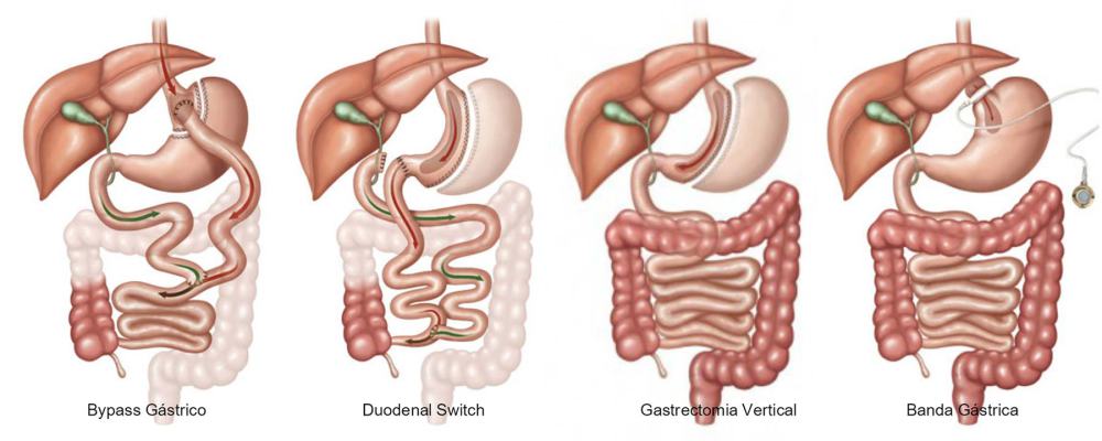 Atualmente a Gastrectomia Vertical é a mais realizada , passando o Bypass Gástrico. No Duodenal Switch assim como na Gastrectomia Vertical , o estômago é parcialmente retirado. E por último , em desuso, a Banda Gástrica ajustável.